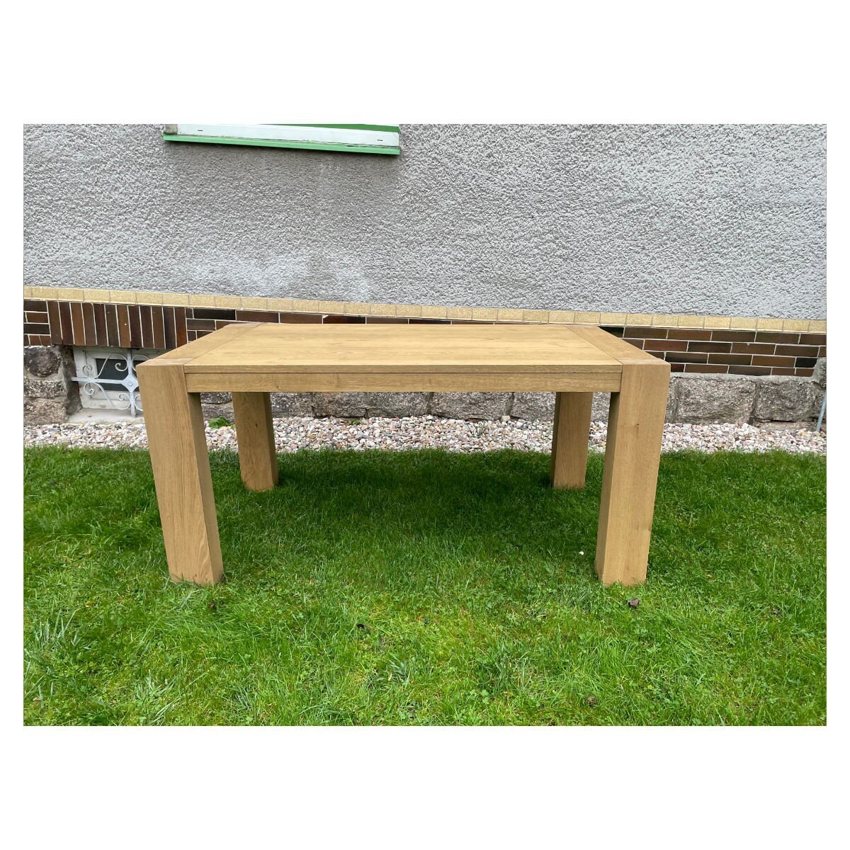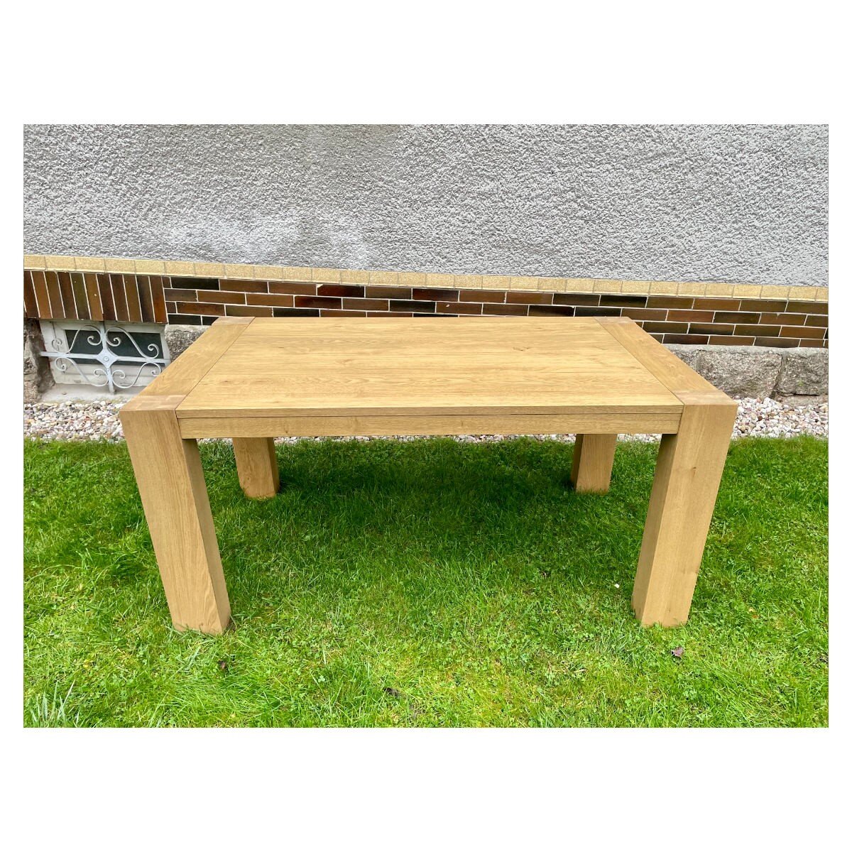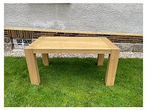 Deska je vyrobena z kvalitního dubového masivu a částečného masivu s odolnou dýhou v odstínu pískové/medové, která dokonale ladí se světle přírodním tónem. Široké nohy jsou v moderním designu, takže stůl působí jednotně a elegantně.